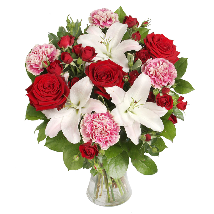 Rich red Roses, pastel pink carnations and aromatic Lilies also convey an irresistible romantic appeal.