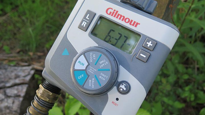 Naturally, rain will revive a brown lawn. However, if rainfall is insufficient watering the lawn deeply once a week will help your lawn to spring back to green. With Gilmour’s Pattern Master Circular sprinkler, you can customize the spray area so you water only the lawn and not the sidewalk. Set up a timer on your spigot, so the sprinkler will come on for 15-20 minutes per watering session. The best time to water is early in the morning between 6 a.m. and 10 a.m., when it’s usually less windy and when temperatures are low.