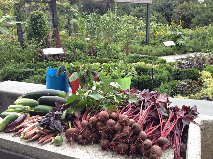 What happens to all of the beautiful produce grown in the Herb Garden? Some is served right here in our café. The rest is donated to the community. This year, St. Francis of Assisi Church in Crown Heights received several carloads of fresh vegetables—including beets, cucumbers, squash, eggplant, okra, lettuce, and kale—and distributed it to people in need via their food pantry. “People are always grateful for wholesome food, but everyone was especially excited to hear that it was grown locally, right in the Garden,” says Jerome Philip, a church member and BBG volunteer who coordinated the donation. The rainy, mild summer made for a great growing season this year, says curator Caleb Leech. Philip was able to deliver several station wagon-loads throughout the summer, and Leech says he will likely have one more harvest of leafy greens still to come.